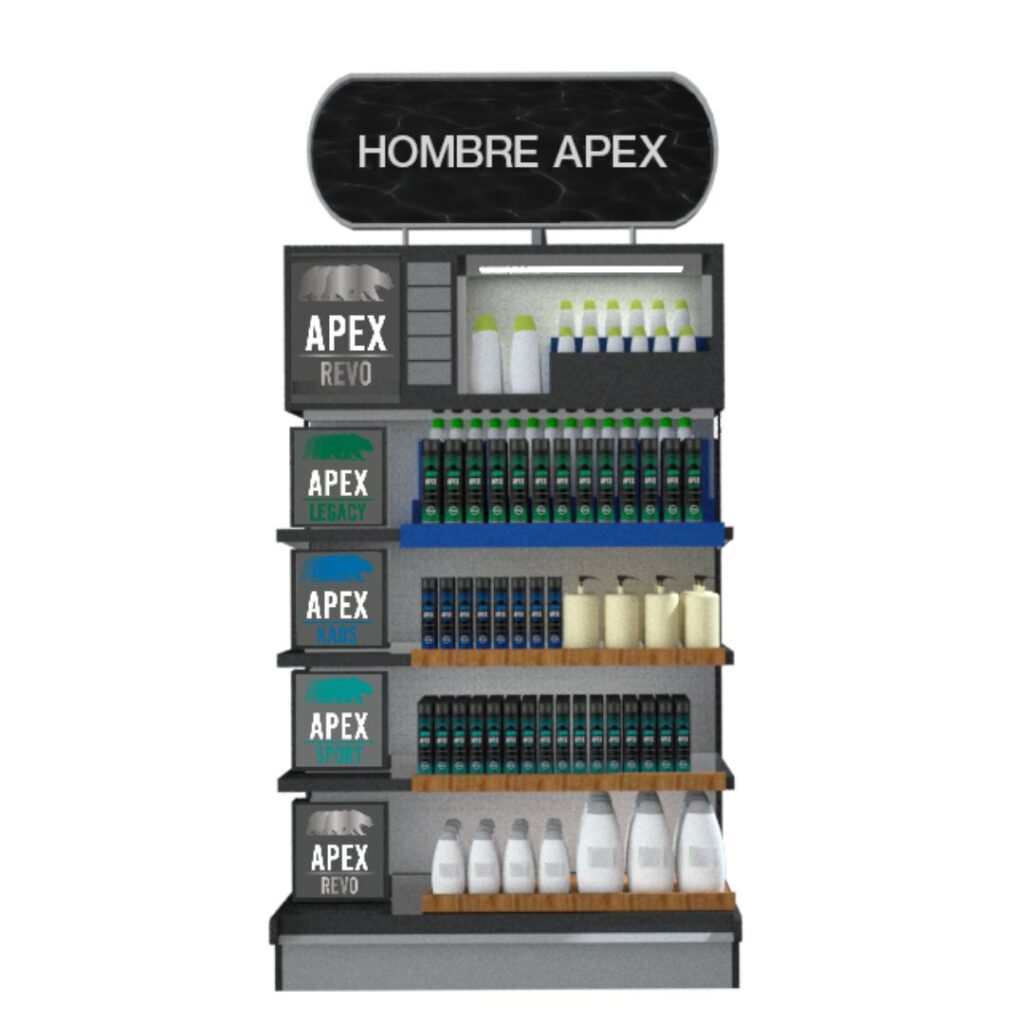 Desarrollamos una estrategia de diseño y ambientación con carácter de marca que pudiera establecer una atmosfera comercial ideal para el consumidor de productos para el cuidado personal masculino.